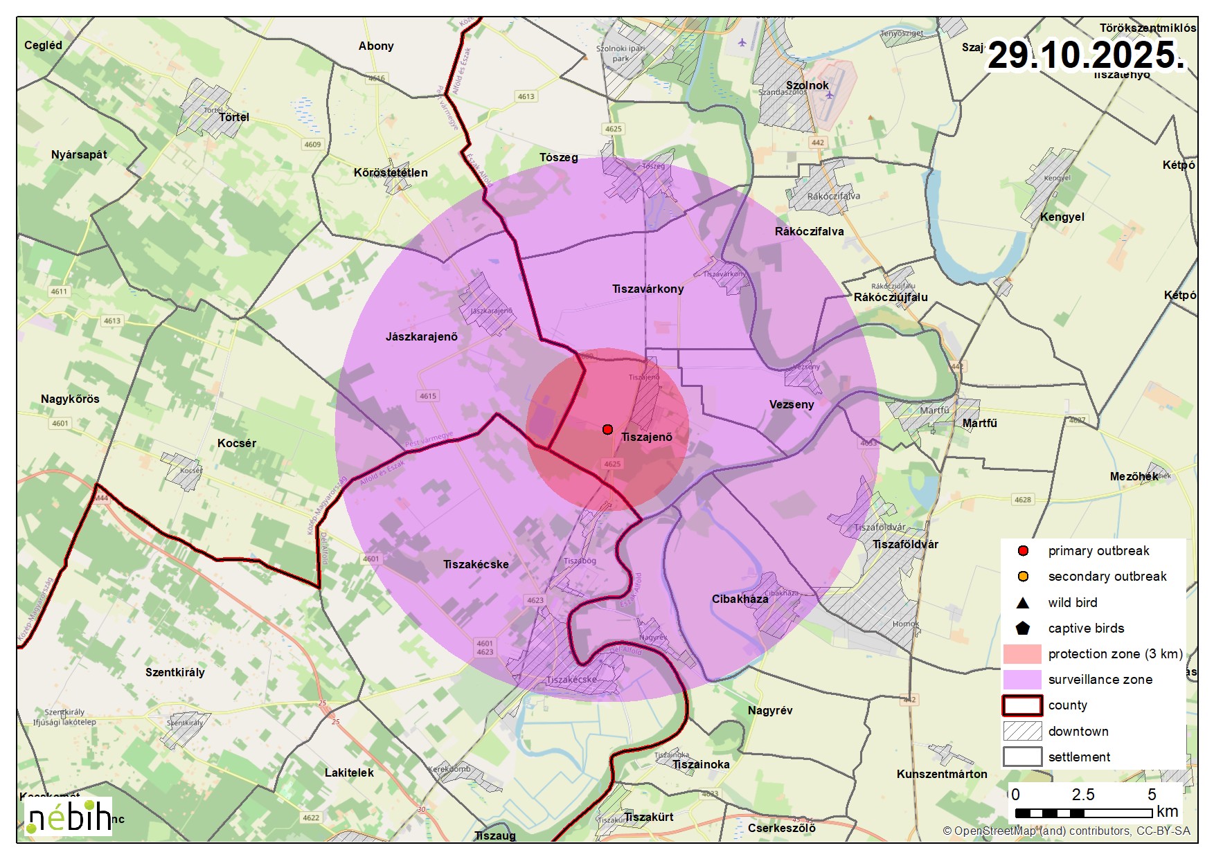 Jász-Nagykun-Szolnok Vármegyei Kormányhivatal Agrárügyi Főosztály határozata megfigyelési (felügyeleti) körzet elrendeléséről madásinfluenza miatt: 2025.10.29. letöltés